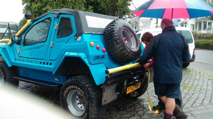 After I had lunch I strolled back to the dakar and the rain was starting to be steady. I could see most of the town was getting ready for the carnival. On my way back I noticed Anneka Rice filming