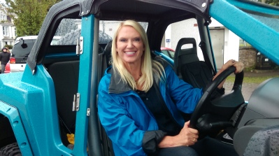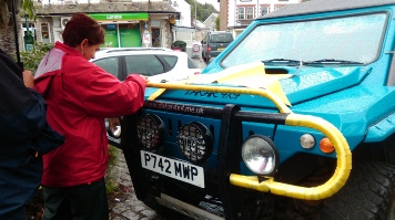 I made my way back to the cricket pavilion where everyone was getting ready. While waiting it stopped raining and had to make a dash back to the Dakar and take the doors off and introduce Anneka to the vehicle she would be driving.